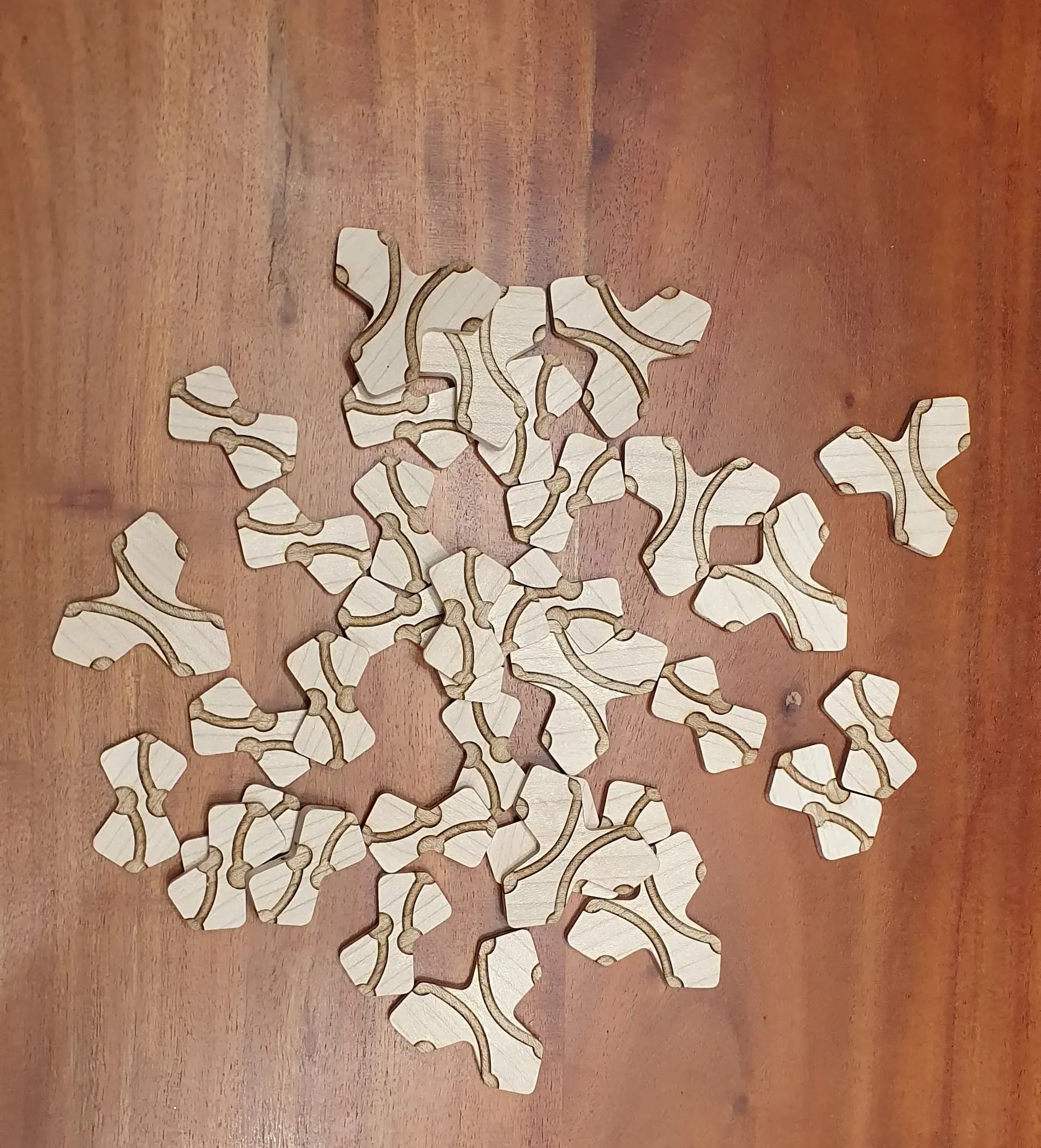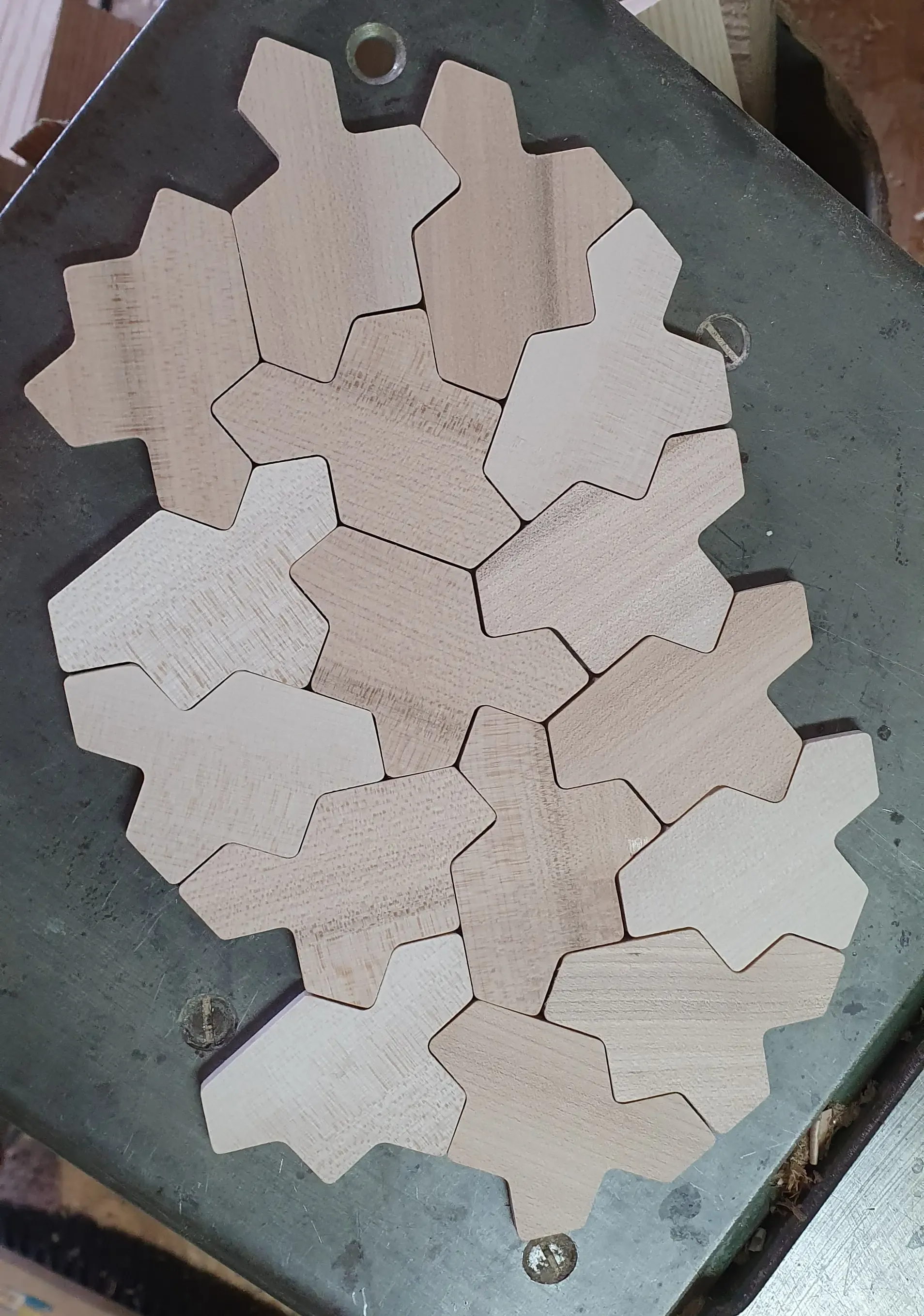 Gefertigte Puzzleteile aus Ahorn – Konstruktion, Entwurf sowie präzises Fräsen und Lasern für passgenaue Einzel- und Serienteile.